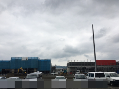 同じ敷地にある隣のスーパーも、前回より進んだようにみえますが、ツルハドラッグの工事の方が進んでいます。
