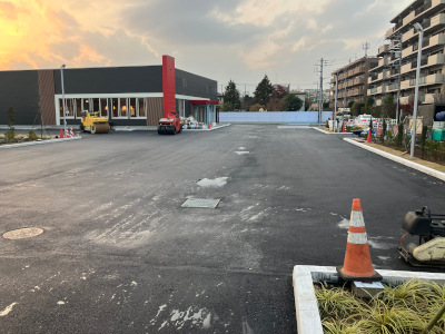 本日の画像は、駐車場にあたる店舗周りの舗装が完了した状態です。